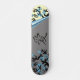 Pássaros Azuis Na Árvore Sakura E Nos Painéis De Símbolos De Amor Chineses. Um skate com um talo asiático com duas aves de amor azuis em uma sakura florescente com flores azuis debaixo de uma cinza, coalhada de um lado, outra sakura do outro e o símbolo de amor chinês no meio.