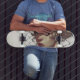 plataformas feitas sob encomenda do skate por Daniela Uhlig. Os trabalhos artísticos originais caracterizados neste skate são "boné".