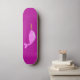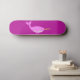 Este skate incrível apresenta uma imagem de arte digital de uma bebê rosa bonito e mágica Narwhal. O corpo principal do Narwhal tem uma textura áspera e é rosa claro enquanto a barriga é um tom de rosa pálido. O Narwhal tem um olho negro com um aluno rosa pálido e uma buzina de ouro brilhante no rosto. Também tem uma cauda delicada e pantufas.
