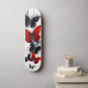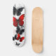 Bando de borboletas voadoras, realistas, vermelhas e pretas em fundo branco com gotas de tinta.