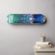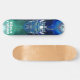 Skate da marca dizzyd, com obra de arte gráfica de uma cabeça de robô azul metálico com correntes elétricas subindo e descendo dela. O texto personalizado, na parte inferior da prancha, está pronto para ser personalizado para ler o que você quiser.