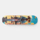 Um design de um cachorro vestindo óculos de sol andando de bicicleta na cidade.