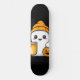 Um fantasma giro em uma colmeia laranja, segurando uma abóbora e um café. As vibrações confortáveis e o charme assustador criam um feliz Dia das Bruxas de outono.