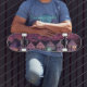 Skate Casas de fila ao pôr do sol em São Francisco,