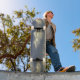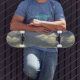 Céus azuis perfeitos e algodão inchado como nuvens fazem um dia perfeito de skate com este design de aparência macia.