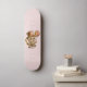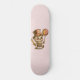 Esta ilustração apresenta um esqueleto de chibi correndo até um carnaval segurando um balão e uma espada de madeira no estilo da safra.