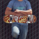 Skate Círculo Dragônico - Cromo com Dourado Fogo em Verm
