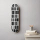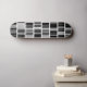 Um desenho abstrato digital constituído por linhas de bares de espessura variada em vários tons. Talvez reminiscente de códigos de bar, estratos em rocha ou camadas de páginas de um livro, ou até como se poderia imaginar trilhas de dados em um disco parecerem um microscópio. Faz uma design atraente e moderna. Produzido a partir de um gráfico de 300dpi, de 9ins x 33ins, de tamanho de cheio, criado de um original gráfico vetorial para garantir a melhor qualidade de impressão.