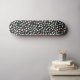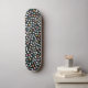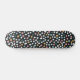 A fun, colorful skateboard design with a polka dot pattern on a black background in pink, grey, green and yellow.
