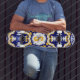 💙 💛 Belos Azulejos, brancos e azuis, amarelos, amarelos e amarelos, nono padrão inspirado pelo famoso trabalho de azulejo português, Azulejos. Perfeito como decoração domiciliar ou como presente para a pessoa da moda. skate com nome e inicial, com Azulejos incríveis com marinho de borda azul