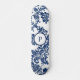 Uma elegante cor damasco azul marinho contra um fundo branco pristino, apresentando intrincados motivos florais e curvas graciosas. Este design irradia sofisticação e charme do eterno.