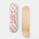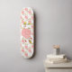 Impressão cor-de-rosa da flor no skate branco.