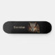 Uau. Um skate muito legal decorado com uma foto de uma coruja de aparência feroz. Adicione seu nome/destinatário. Paleta de cores preta, bronzeada e laranja.