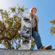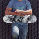 Crânio quebrado preto e branco com uma vibração do Dia das Bruxas. Contrastes negros e detalhes quebrados adicionam uma atmosfera assombrosa e assustadora.