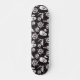 Gráficos brancos de crânios e elementos piratas sobre fundo preto, padrão de repetição contínua