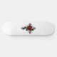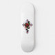 Cruzamento prateado com rosa vermelha e folhas pretas sobre fundo branco.
