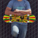 Skimcaribbean Lion Cruiser skate, rasta sunrise e logotipo da palmeira de espadim-do-mar na cauda