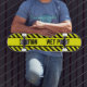 skate com sinal de aviso legal e engraçado design. "CUIDADO - O texto da PINTA WET é personalizável.