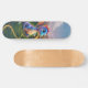 Cute fire breathing dragon sitting in a field of colorful flowers is an adorable design that would be perfect for a skateboard for any child.