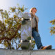 Unique photograph of cats eye view from the daisy garden. Beautiful white daisies against the bright summer blue sky.