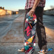 Este skate apresenta um design geométrico surpreendente com ângulos agudos e cores vibrantes como vermelho, preto e lacre. Ideal para skatistas desenhados para arte ousada e moderna, este andar unisexo combina energia urbana com estilo contemporâneo para um olhar distinto.