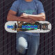Um skate ruim a$$, com um cão demônio. Este doberman tem olhos brilhantes e chuta muito bumbum. Um pouco mais largo, um pouco mais longo, perfeito para o skater veterano em rampas, ruas, valas e piscinas. Os decks de mapas de duro-rocha de melhor qualidade e um processo de impressão inigualável com patente pendente fazem deste o melhor skate disponível no mundo.