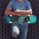 Um skate excepcionalmente projetado que comemora o grau de Eagle Scout.