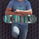 Um desenho abstrato composto por linhas texturizadas por abstrato, que lembra um pouco os contatos do circuito, por exemplo, os pinos nos módulos de memória do computador.