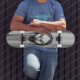 Um crânio de vampiro preto e branco. Um trabalho mantido do artista Scott Paton.