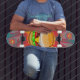 O skate de arte sobre píxeis de Deluxe Sizzle Burger com a comida e o elemento de grelha.