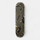 Traços ondulados de folha de ouro, mínimos e elegantes, fazem uma pintura líquida, apresentando uma coleção de várias linhas onduladas e círculos com traços irregulares de design de arte brilhante amarelo-dourado-fluido, numa cor de cinza escura, fundo preto. Na moda abstrato.