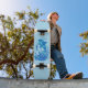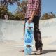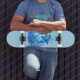 design decorativa de uma orca de cor azul ou de uma baleia assassina saltando da água num skate