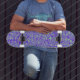 Faça uma declaração ousada com nosso baralho de skate Design verde e roxo. Perfeito para skatistas de todas as idades, este skate único e decorativo traz uma arte dinâmica à sua volta. Ideal para crianças, adolescentes e adultos, faz um presente de aniversário fantástico, um presente de destaque para qualquer ocasião, ou um acréscimo marcante à sua decoração na parede. Disponível em todos os tamanhos apenas como um andar ou como um skate completo com caminhões e rodas, combina design artística com o entusiasmo desportivo