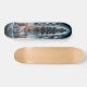 O "Dieselpunk Broadcast Tower Deck" apresenta uma elaborada torre de transmissão, um testemunho do fascínio da era Dieselpunk pela tecnologia avançada de comunicações. A estrutura de torre é adornada com antenas, antenas de satélite e vários equipamentos de comunicação, todos estilizados à moda de Dieselpunk com quadros metálicos e juntas rebatidas. O ambiente dinâmico está cheio de faíscas e ondas elétricas, sugerindo transmissões poderosas da torre. Técnicos e engenheiros são representados trabalhando na maquinaria, ressaltando a importância da comunicações no mundo de Dieselpunk. A paleta colorida de silencios metálicos, azuis elétricos e vermelhos vibrantes transmite claramente a energia e a proeza tecnológica da torre de transmissão. Este gráfico de skate captura a essência da abordagem visionária de Dieselpunk às capacidades de comunicação e transmissão.