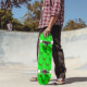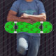 Um bando de dinossauros verdes em chamas corre através deste skate.