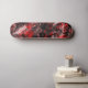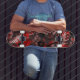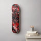 Skate com grafites vermelhos e pretos mais o skelton e palavras insanas/poder no design.