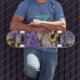 Um original, meios mistos, design do gato criou usando técnicas da colagem, do desenho e da pintura. Um grande skate para amantes do gato.