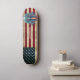 A personalização do Dragão Americano Skating é sobre diversão, e há algo para todos na nossa área de skate. Um skate fabuloso garantiu que levanta um sorriso! . Mostre seu orgulho americano ou dê um presente especial com este skate americano Flag em um angustiado design de grunge vestido em madeira. Este design de skate de bandeira americana com estrelas e listras em vermelho branco e azul. Divirta-se com a sua mensagem pessoal... patinando nas ruas e no skate park, ou cruzando.