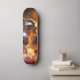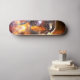Fantasia muito única desenhada para skate. Este skate tem um dragão que respira fogo que está voando em um céu noturno estrelado.