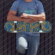 Skate Dragão Dourado na textura de couro azul de Lapis
