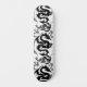 The image showcases a bold monochrome dragon pattern set against a deep black background. Four stylized tribal dragons are positioned in a circular arrangement, each rendered in dark gray with sharp curves, sweeping tails, and intricate flame-like details. The symmetrical layout creates a balanced, emblem-like composition with strong negative space in the center. The dragons feature fierce profiles, curved horns, and flowing ornamental lines, giving the design a powerful, mythical, and slightly gothic aesthetic. This striking dragon motif is ideal for apparel graphics, tattoo inspiration, gaming artwork, branding elements, or decorative surface design.