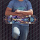 "Mergulhe na arcana com o Duelo 'Feiticeiros': Deck de skate do beco vitoriano', um momento central da Coleção de Fantasias Gasabas. Este baralho dá vida a uma intensa batalha mágica entre dois feiticeiros num beco vitoriano revestido de uma pedra, sob o brilho estranho das lâmpadas de gás. Com as varas na mão, desencadeiam feitiços de luz e magia, cercados por símbolos mágicos gravados que aumentam o seu poder. A cena dinâmica, cheio de estalos de energia e espirais místicos, é representada em profundos púrpuros, blues vibrantes e flashes de branco e ouro, capturando a essência de um show de fantasia de lâmpada gasosa."