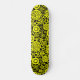 Um skate com design abstrato interessante e diverso que consiste em várias formas circulares em diferentes estilos conectados por linhas finas como uma rede ou um ecossistema.