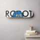 Skate gráfico da ilustração do robô engraçado do estilo dos desenhos animados. O texto do fundo pode ser personalizado.
