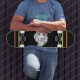 Skate esboço desenhado pela mão preto, cachorrinho branc
