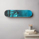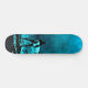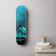 O surf lindo do verão em um néon gosta da matiz azul com uma folha de prova do grunge. Caracterizar um surfista com prancha à disposição, estando nas rochas, olhando fixamente para fora sobre a água como as ondas de oceano retrocede acima em torno dele.