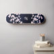 Um ramo de flor de cerejeira rosa desbotado em um fundo azul do céu noturno estrelado. Personalize este skate elegante da galáxia floral com seu monograma: