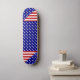 Design da bandeira americana, completada com listras vermelhas e brancas, com fundo azul e estrelas brancas.