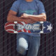 skate projetado com as estrelas e faixas da bandeira americana com os EUA em prata.