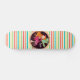 Fada giro-rosa e púrpura com asas verdes sobre o cogumelo em listras brilhantes coloridas do arco-íris, vermelha, laranja, amarela, verde, azul-turquesa aqua.
